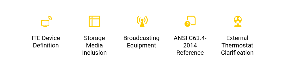 - Updated Section 4(e) to clarify that external thermostats are subject to the requirements of ICES-003 with a revised transition period outlined above the list of changes.