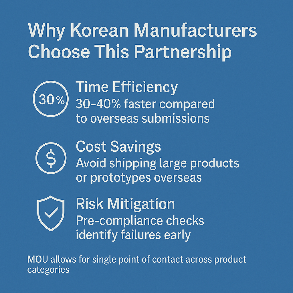 - Streamlined Workflow: The Memorandum of Understanding (MOU) enables a single-point-of-contact process for certifications across product categories, including consumer appliances, IT equipment, telecommunications devices, and wireless products